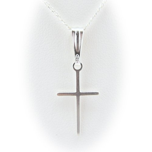 Pendants by Joyful Creations , For girls. Italian jewelry manufacturers are well-renowned for their exquisite design and fine craftsmanship. Beautiful polished, shiny silver cross pendant, plain and simple, hangs from a sterling silver bail on a sterling silver diamond cut open curb chain. The cross measures approx. 1 1/8 inch high by 7/16 inches wide, including the bail. Pendant, made in Italy, is ready to wear with the included open curb chain. This elegant open curb chain has delicate links that are perfect to show off a gemstone solitaire or light weight sterling silver charm pendant. Fine round wire links are diamond cut on two sides for extra light reflection - what sparkle. Approx 1.3mm wide and 0.3mm diameter link thickness. We imported this beautiful, new solid sterling silver chain directly from a leading Italian manufacturer. The solid sterling silver chain is marked with 925 and ITALY and the clasp is marked 925 so you know that they are of the top quality. Single strand, length is from loop end to clasp. Nickel free. Gift box included.