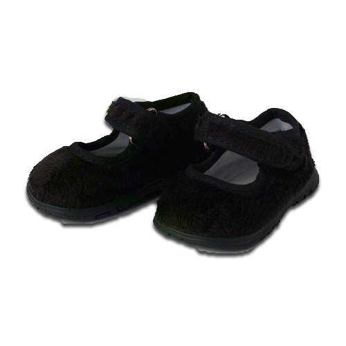 Soft black shoes with easy closure. Fuzzy fabric uppers with rubber soles.