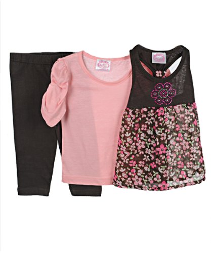 Sugah Honey "Sweet, Add some sweetness to her wardrobe with this cute outfit by Sugah & Honey! All items are made of soft materials for kid-friendly comfort. Includes: Dress: jersey tank bodice, chiffon skirting printed with bows, bejeweled flower on chest, racerback. (99% Polyester, 1% Metallic; Trim, 60% Cotton, 40% Polyester) T-Shirt: soft jersey, round neck, ruched princess sleeves. (60% Cotton, 40% Polyester) Leggings: elastic waistband. (58% Cotton, 37% Polyester, 5% Spandex) Machine Wash Cold Made in Pakista