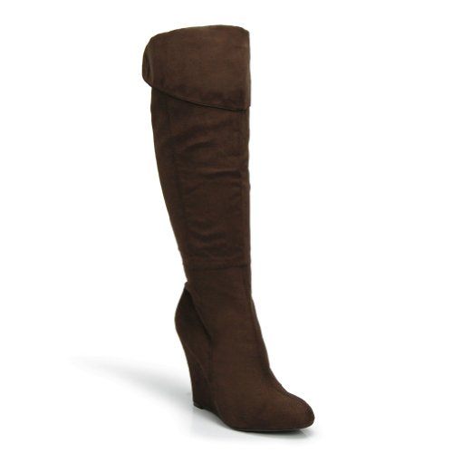 Here are some of the great features of Knee High Faux Suede Wedge Boot Dark Mud