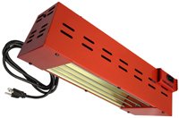 Qmark , Qmark FRR Plug-In Radiant Heaters FRR11012B Designed for supplemental indoor heating in residential and commercial areas; laundry rooms, work shops, toll booths, garages, assembly areas, loading and shipping docks and well houses. For residential and light commercial applications with gold anodized aluminum enclosure and reflector. All Plug-In Radiant Heaters have Quartz Tube elements and 3 prong cord set Apply heat only where needed Convenient ceiling chain mounting and cord set allow custom heating of only the areas being used. No need to waste energy heating the entire room or building FRR11012 has switches for 500 or 1000 watt operation.